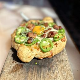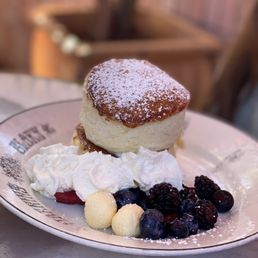 VIBES: 5/5 FOOD: 4/5 SERVICE: 3/5 VALUE: 3/5 A really cute, fun spot for the girlies and those who appreciate a curated vibe. It took a while (like 25 mins) just to get through the line to put our names on a table, but once you do, you can walk around until you get a text your table is ready. We had a party of 7 on Sunday at 11 am and it took 45 mins for the table to be ready. Probably an hour altogether! They gave us a free lil champagne shot for our celebrating bachelorette which was fun. The service was slow, but friendly and everyone had a fun vibe. I loved the app cart -- we got deviled eggs and they were good, but a bit stew at $3 each. The soufflé pancakes were exceptional, just get. The omelette was fine, nothing extraordinary. I heard the hashbrowns are great. I also was meh about my cocktail, the orange joolius. All in all, great vibes. I'd go back just for that and the soufflé pancakes, but not anytime soon.